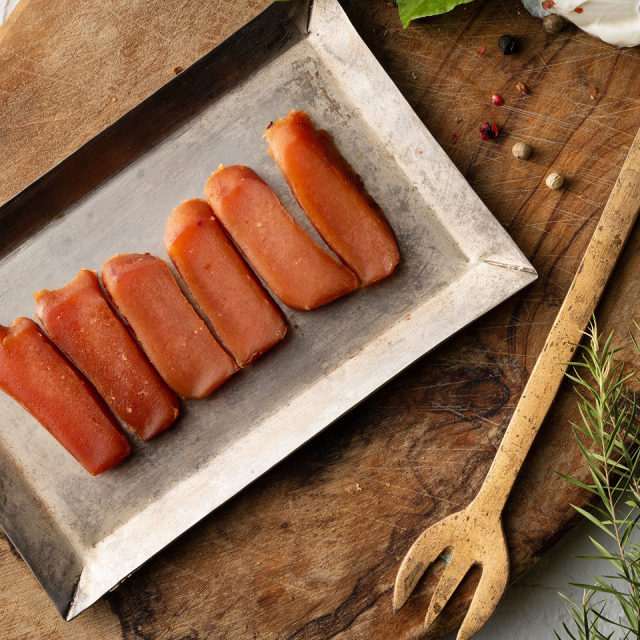 | 原材料名 | すけとうだらの卵巣(ロシア又は米国)、食塩、還元水あめ/調味料(アミノ酸等)、酸化防止剤(V.C)、ナイアシン、発色剤(亜硝酸Na)、酵素、(一部に小麦・大豆を含む) |
